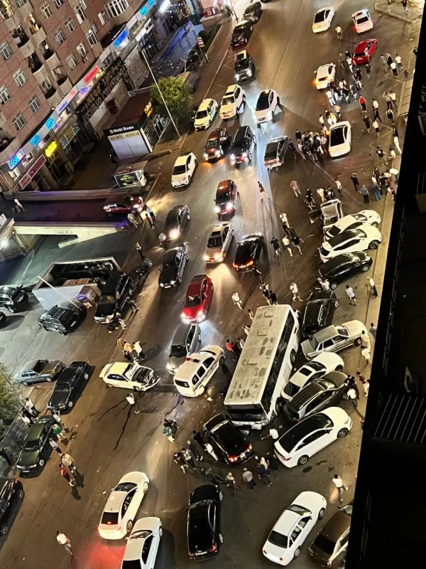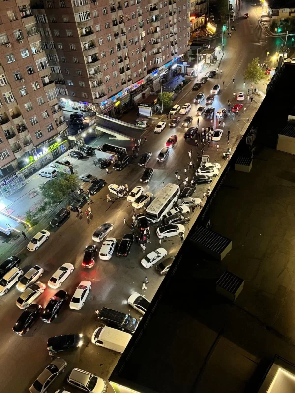 Hadisə şahidlərinin sözlərinə görə, qəza nəticəsində iki avtomobil yanıb və 10-dan çox maşına ciddi ziyan dəyib.