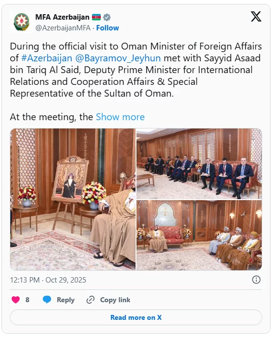 Xarici işlər naziri Oman Sultanının xüsusi nümayəndəsi ilə görüşüb